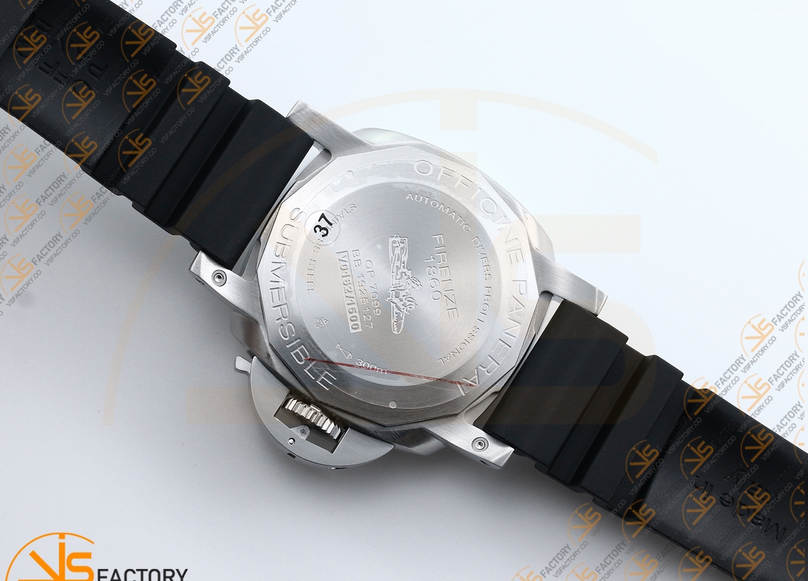 The VS Factory Panerai Submersible PAM683 features a bold black dial housed in a rugged 42mm 904L stainless steel case, engineered for underwater performance with 300m water resistance. Powered by the Asia XXXIV movement, this dive watch offers reliable precision and a 3-day power reserve. Its unidirectional rotating bezel, luminous hour markers, and sturdy rubber strap ensure legibility and comfort in all conditions. Combining Panerai’s iconic cushion-shaped case and crown guard with modern engineering, the PAM683 is the ideal companion for adventurers and collectors seeking a blend of durability, style, and Swiss-inspired craftsmanship.