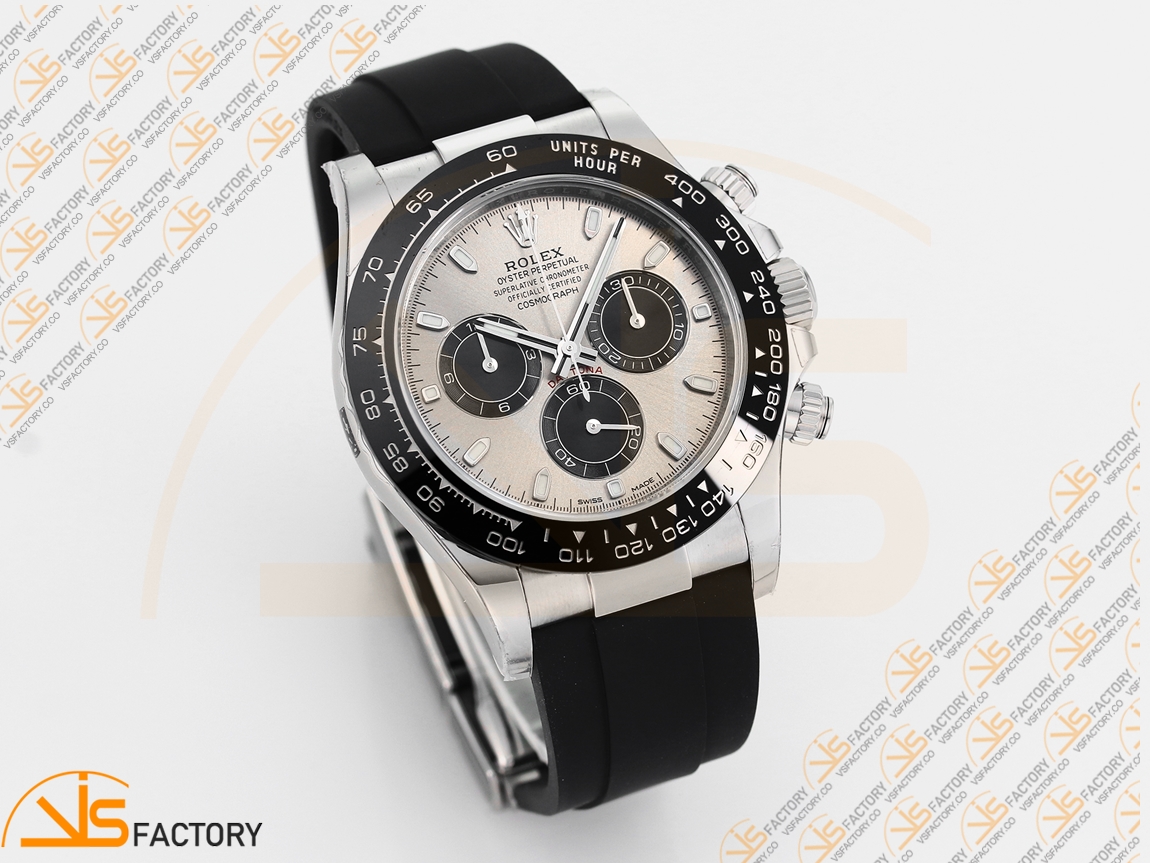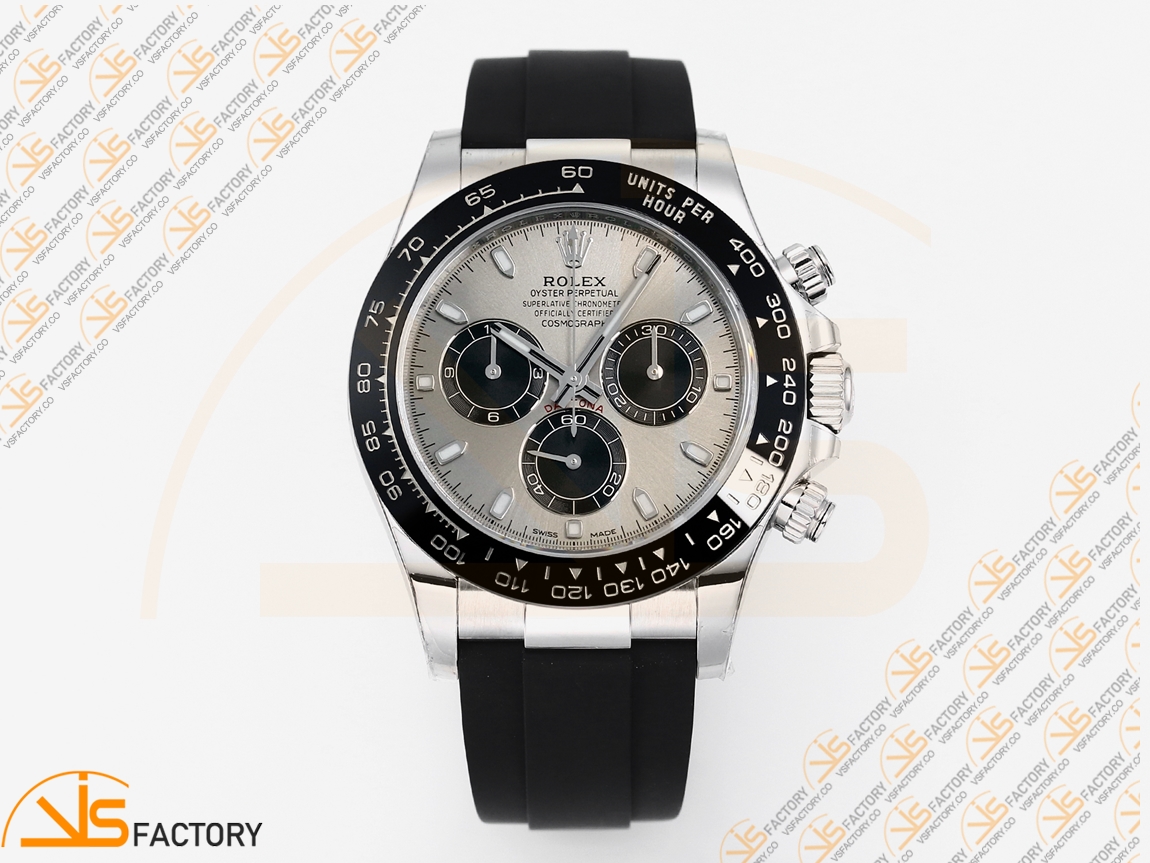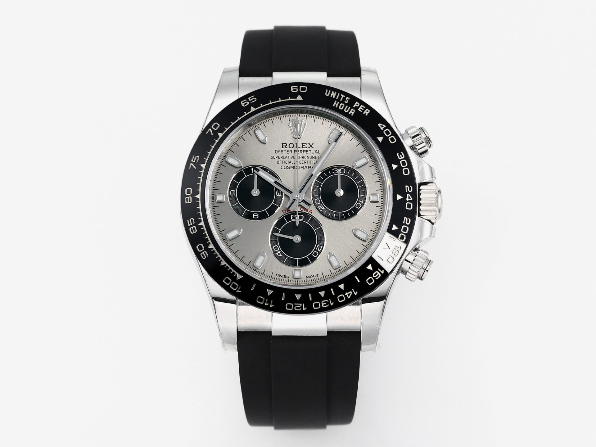 The VSFactory Rolex Daytona 116519 features a refined gray dial set in a 904L stainless steel case with an elegant Oysterflex strap for modern sport-luxury appeal. Powered by the reliable DD4130 movement, this chronograph delivers precision timekeeping and iconic Daytona design. A standout choice for collectors and enthusiasts.