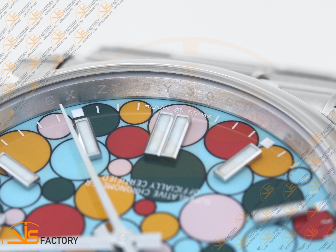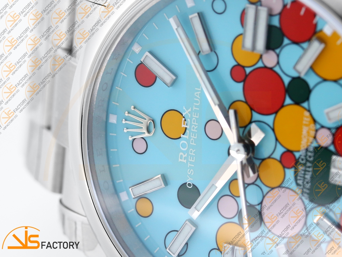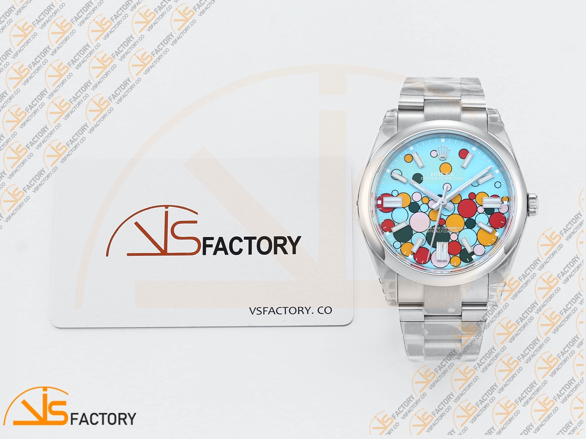 The VS Factory Rolex Oyster Perpetual 124300 features the vibrant Celebration Dial, a standout design with colorful bubbles representing the playful spirit of Rolex. Crafted from premium 904L stainless steel, the 41mm case houses the high-performance VS3235 super clone movement. With exceptional accuracy, a smooth bezel, and iconic Oyster bracelet, this model blends sporty elegance with bold design. Perfect for collectors who appreciate timeless quality and unique aesthetics.