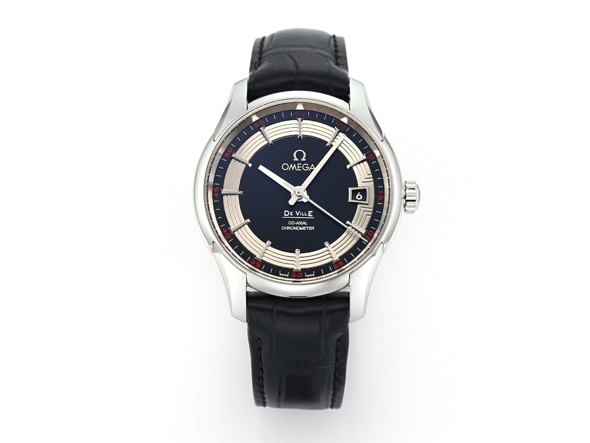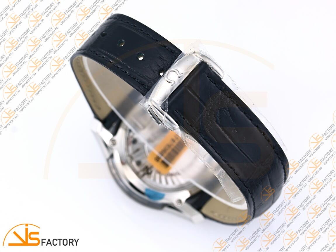The Omega De Ville Hour Vision 41mm by VSFactory features a sophisticated black and silver dial paired with a black crocodile leather strap. Crafted from durable stainless steel and powered by the A8500 Super Clone movement, this timepiece blends timeless elegance with reliable performance. A perfect choice for those seeking classic luxury and precision.