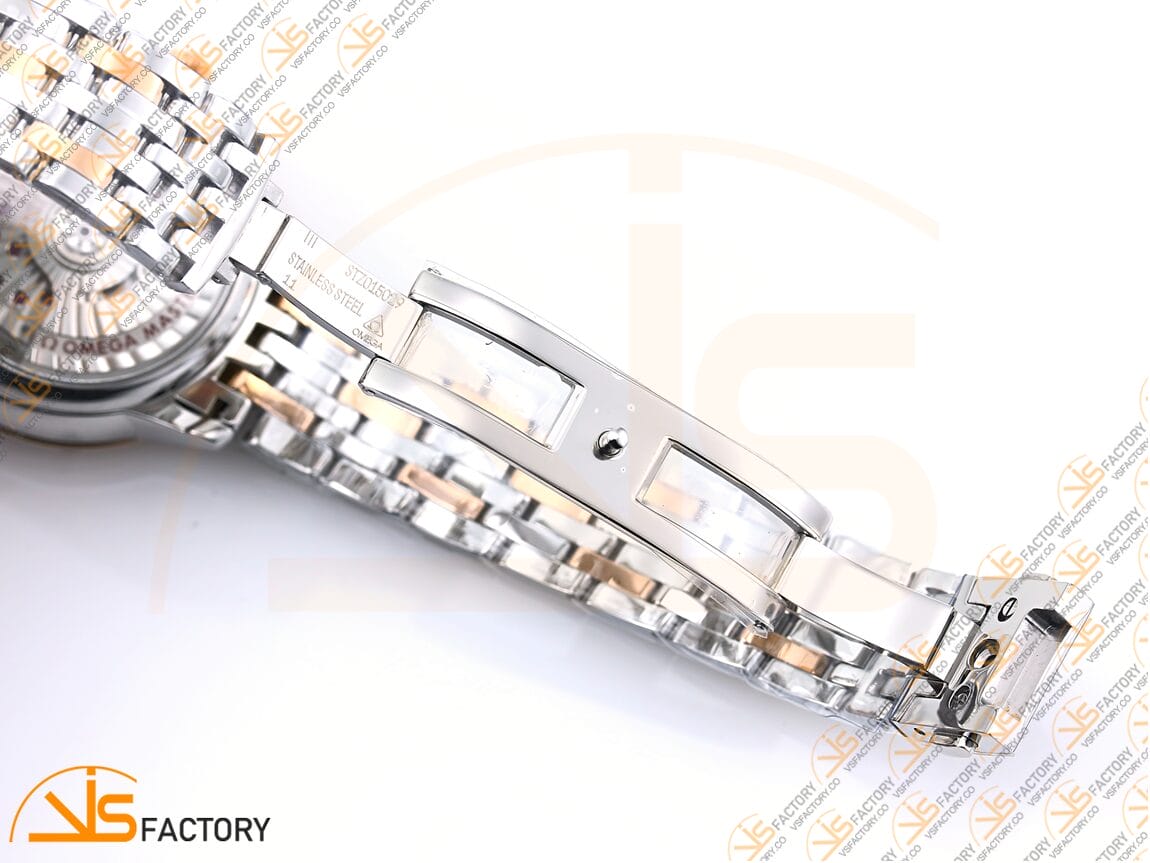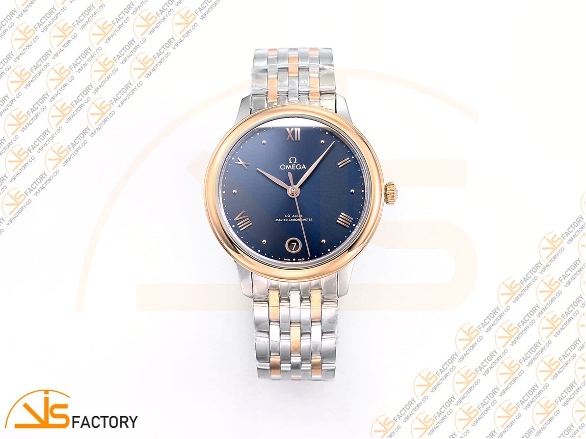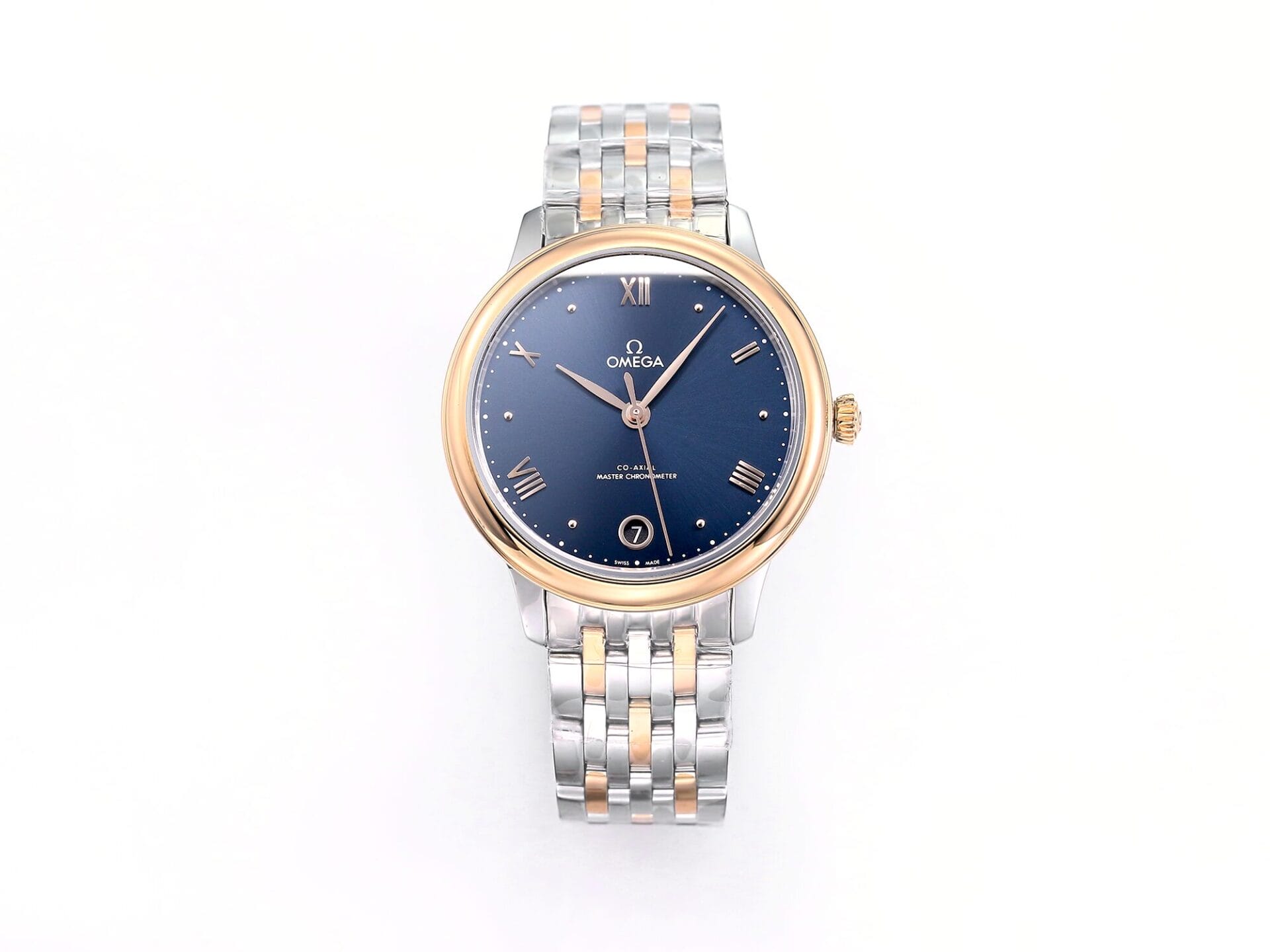 The Omega De Ville Prestige 34mm by VSFactory features a luxurious blue dial that complements its rose gold and stainless steel case. Designed for elegance and precision, this timepiece is powered by the A8800 Super Clone movement. A timeless accessory that blends classic aesthetics with modern craftsmanship.