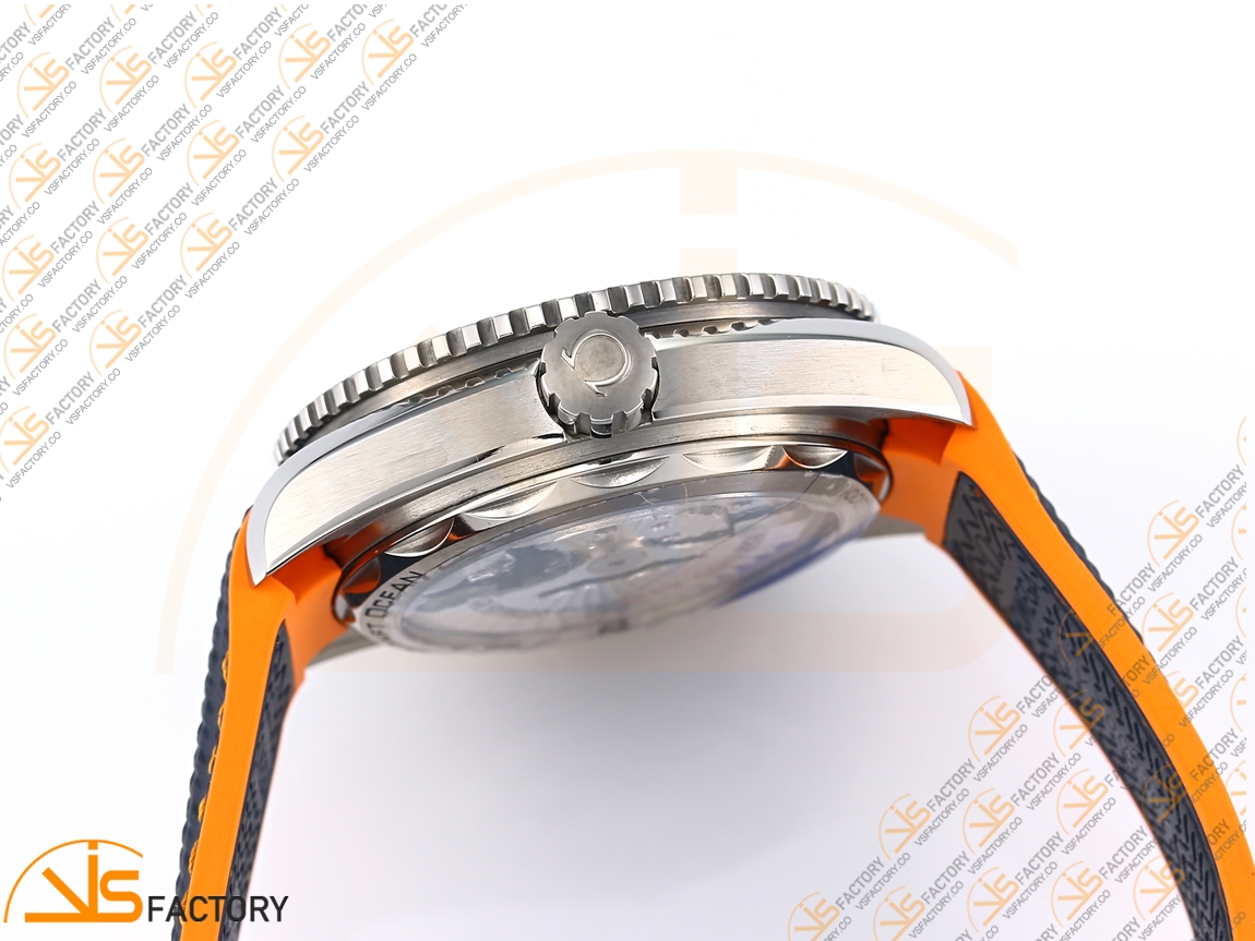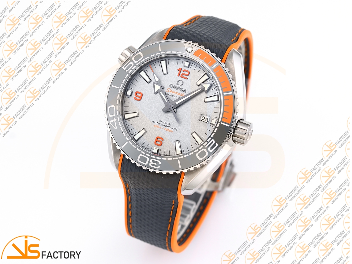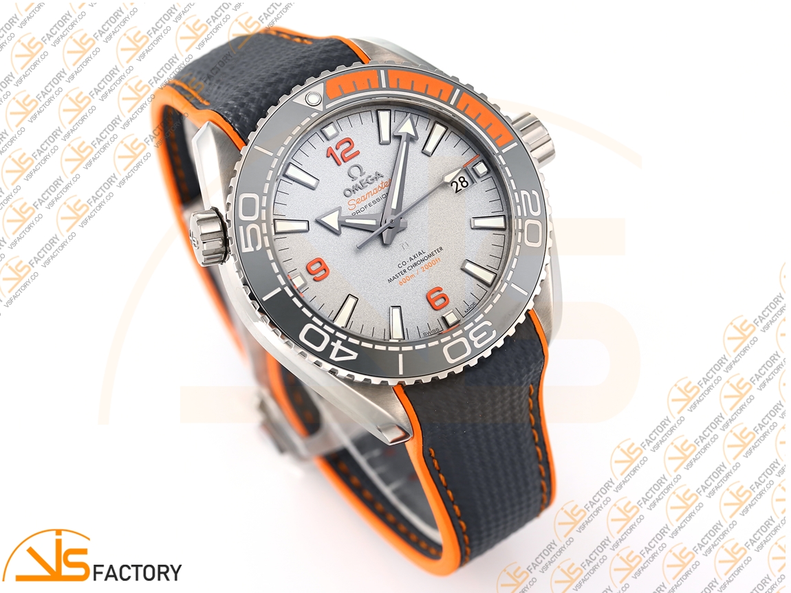 Discover the Omega Planet Ocean 43.5mm from VSFactory, featuring a refined gray dial and sporty black/orange ceramic bezel. This diver’s watch is crafted from 904L stainless steel and comes equipped with a durable nylon strap for added comfort. Powered by the high-precision A8900 Super Clone movement, it’s the perfect blend of rugged performance and sleek style.