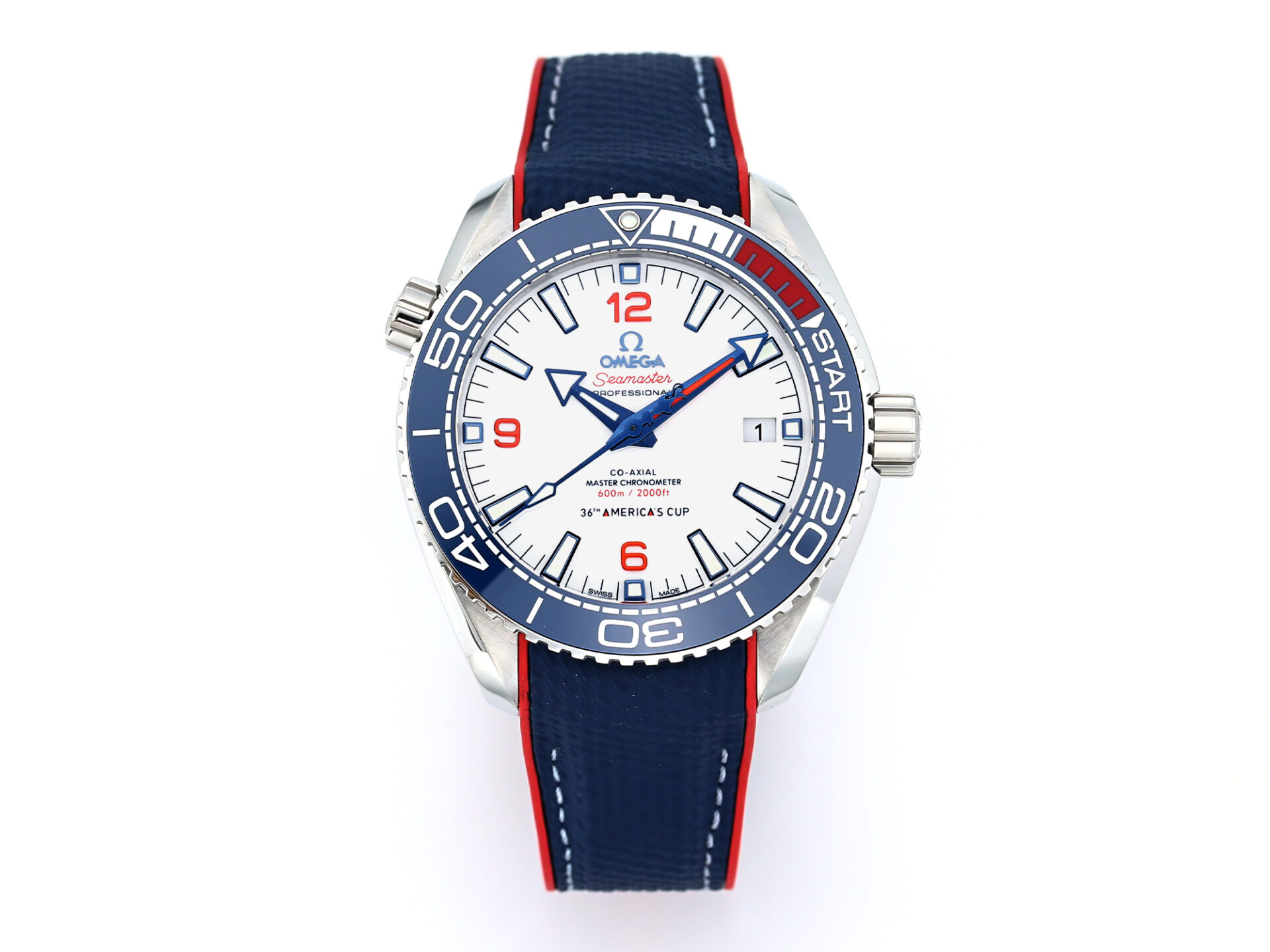 Discover the Omega Planet Ocean 43.5mm America’s Cup edition by VSFactory, crafted with a stainless steel case and a sleek white dial. Designed for marine excellence, this watch features a sporty rubber strap and is driven by the precise A8900 Super Clone movement. Perfect for collectors and adventurers, it blends Omega heritage with cutting-edge craftsmanship for unmatched style and reliability.
