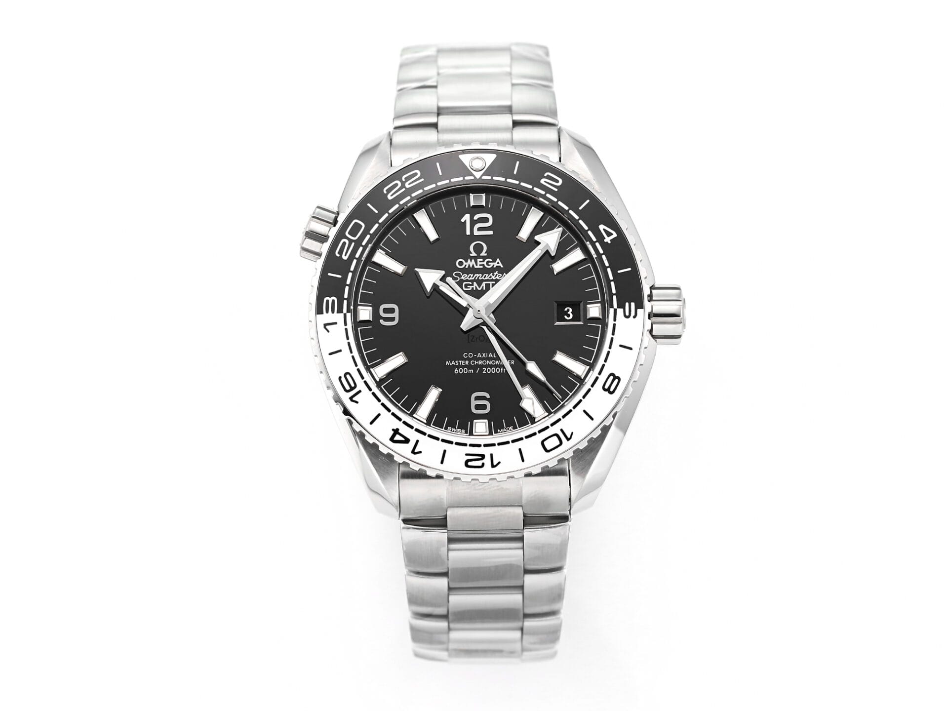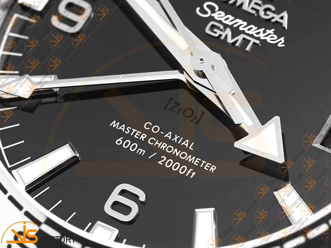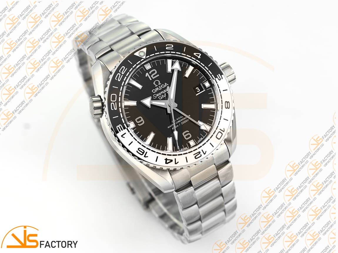 The Omega Planet Ocean GMT “Tai Chi” 43.5mm by VSFactory features a bold black dial with distinctive GMT functionality, offering dual time zone tracking for global travelers. Built from 904L stainless steel and powered by the high-accuracy A8906 Super Clone movement, this model delivers both precision and durability. Its unique design and functionality make it ideal for those who value both performance and aesthetic innovation.