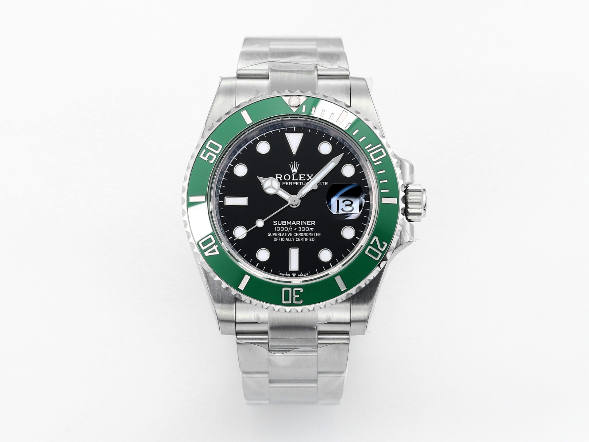 Discover the Rolex Submariner 126610LV, also known as the Kermit, featuring a vibrant green dial and robust 904L stainless steel case. This iconic diver’s watch is powered by the reliable VS3235 movement, delivering superior performance and precision. With its classic style, water resistance, and luminous markers, it’s perfect for both underwater adventures and daily elegance.