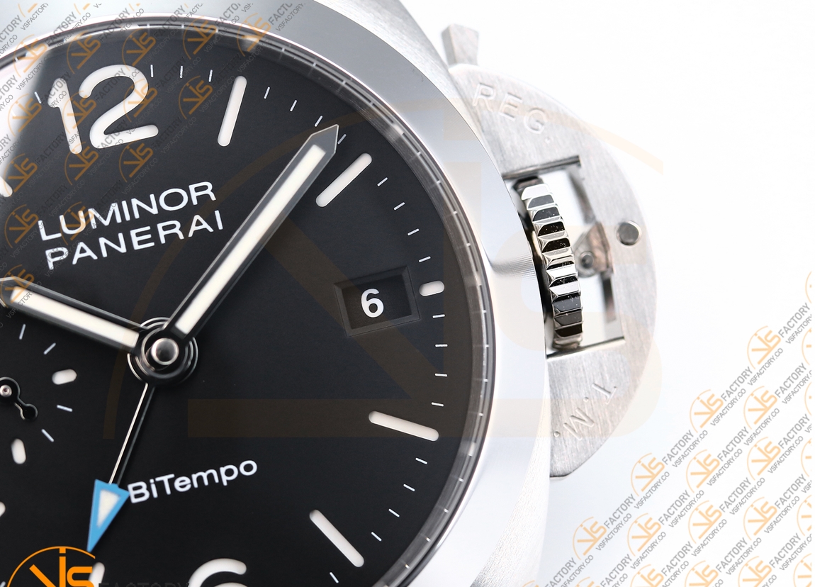 VS Factory Panerai Luminor Quaranta BiTempo PAM1365 Black Dial Stainless Steel Rubber P.900 Movement