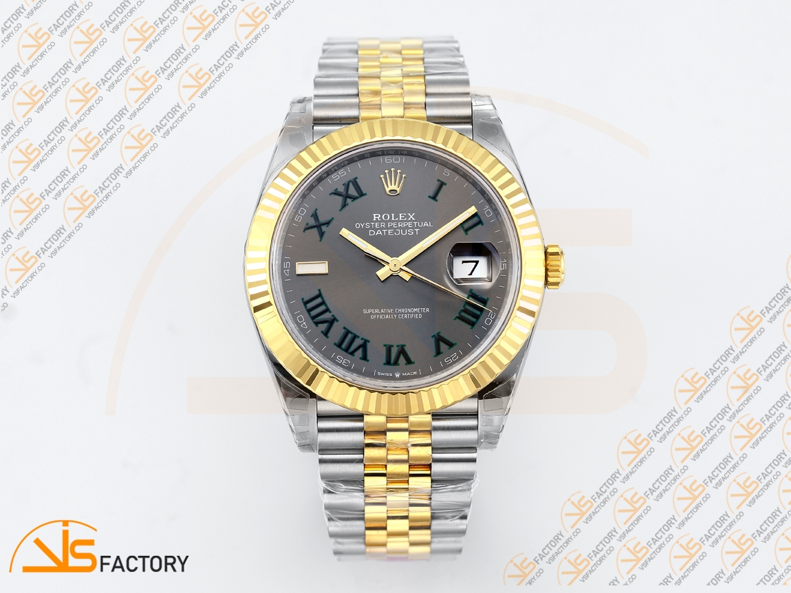 VS工場 ロレックス デイトジャスト41 グレーダイヤル 904Lスチール イエローゴールド ジュビリーブレス VS3235ムーブメント