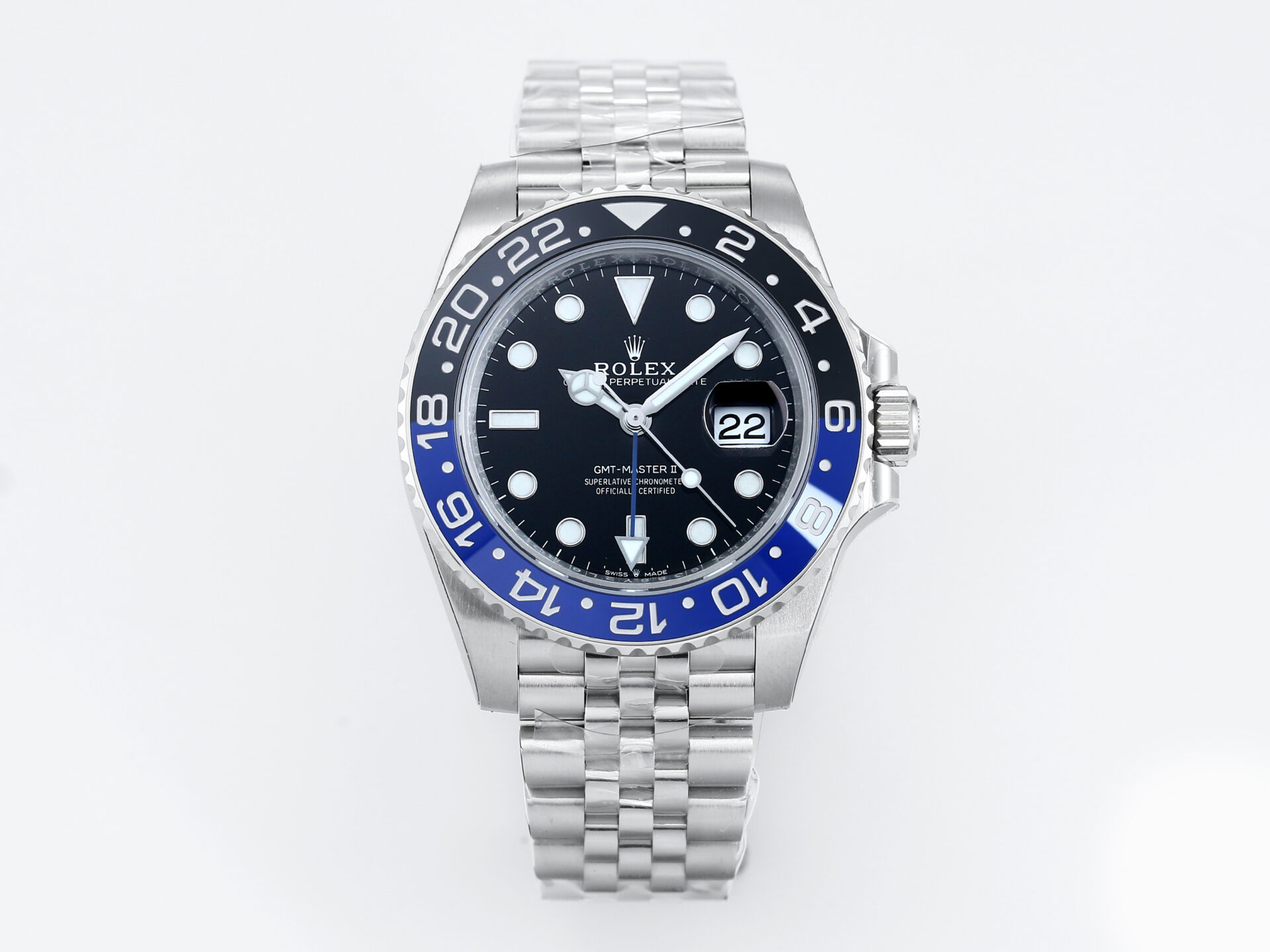 VS工場のGMTマスターII「バットマン」126710BLNRタイプは、青黒のセラミックベゼルが象徴的なモデルです。904Lステンレススチールのケースとジュビリーブレスを組み合わせ、視認性の高いブラックダイヤルを採用。心臓部には3285系ムーブメントを搭載し、GMT表示と約70時間のパワーリザーブを実現します。世界を移動するトラベラーやコレクターに向けて、精度・装着感・仕上げのバランスを追求しました。出荷前には検品写真をご提供し、日本語サポートと追跡番号でお届けまで丁寧にご案内します。防水数値は目安となり、ご使用環境により変動します。