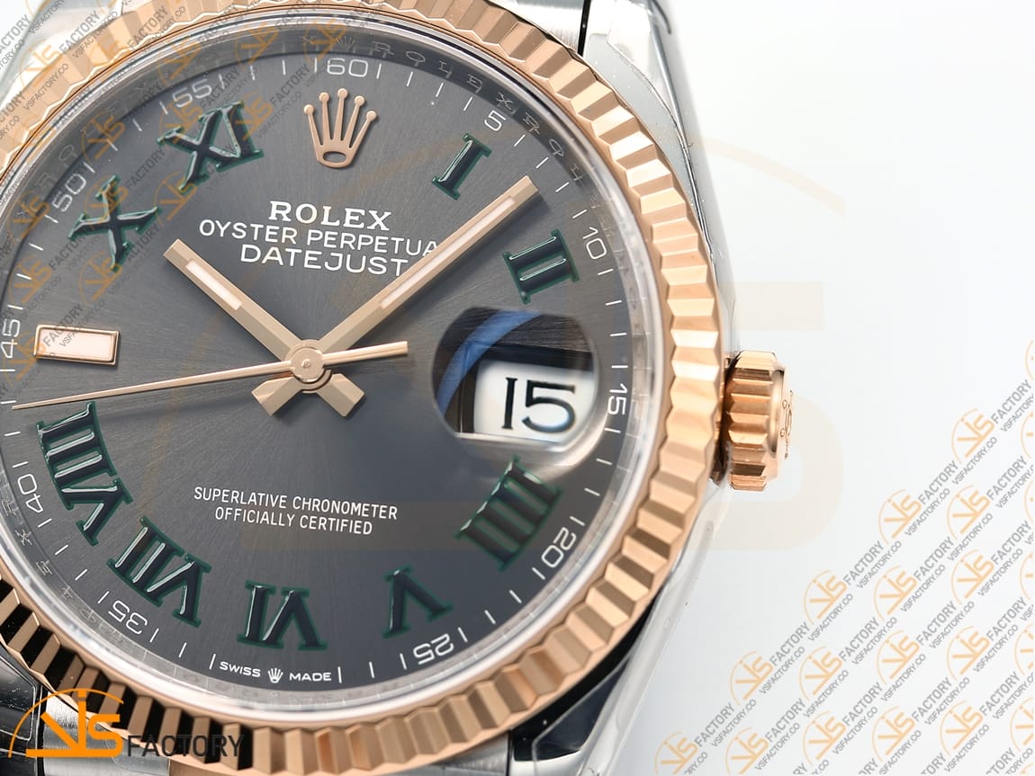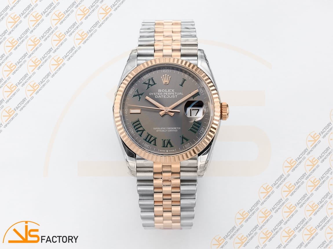 VSFactory (VSF) Rolex DateJust 36 126231 Gray Dial Green Roman Marker 904L Steel and Rose Gold Jubilee Bracelet VS3235 Movement