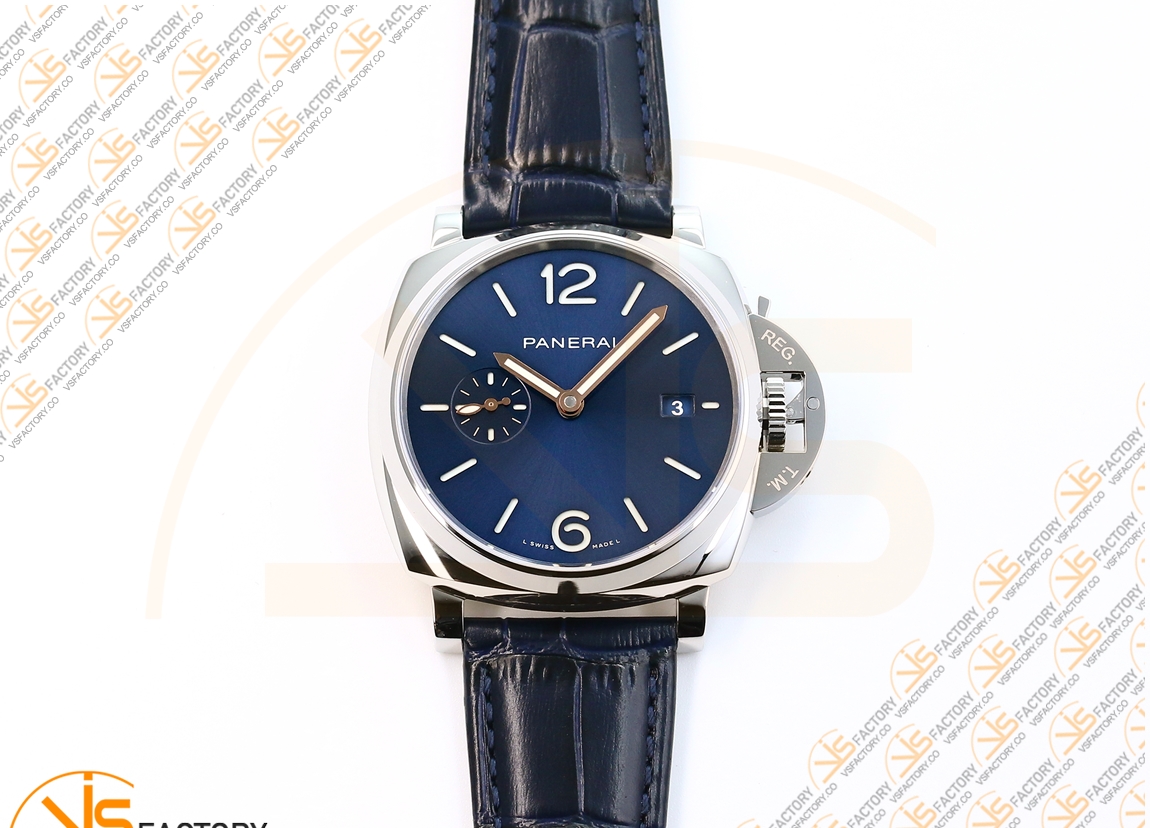The VSFactory Panerai Luminor Due PAM1274 features a sleek 42mm stainless steel case paired with a refined blue dial, delivering a modern and elegant interpretation of Panerai’s iconic design. Equipped with the P.900 Super Clone movement and finished on a premium leather strap, this timepiece offers a slim profile ideal for daily wear while retaining unmistakable Panerai character.