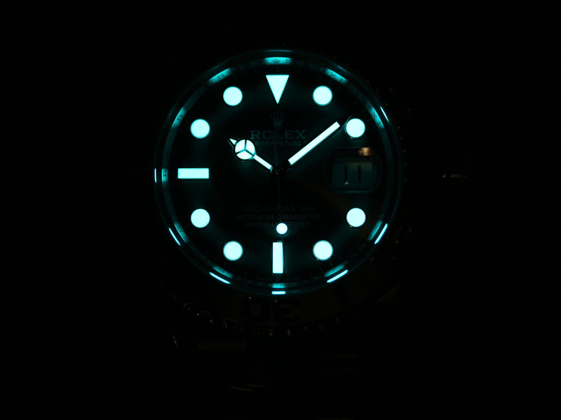 滑らかな回転ベゼルと独特なケースフォルムが、海洋スポーツを象徴するヨットマスターの個性を際立たせます。